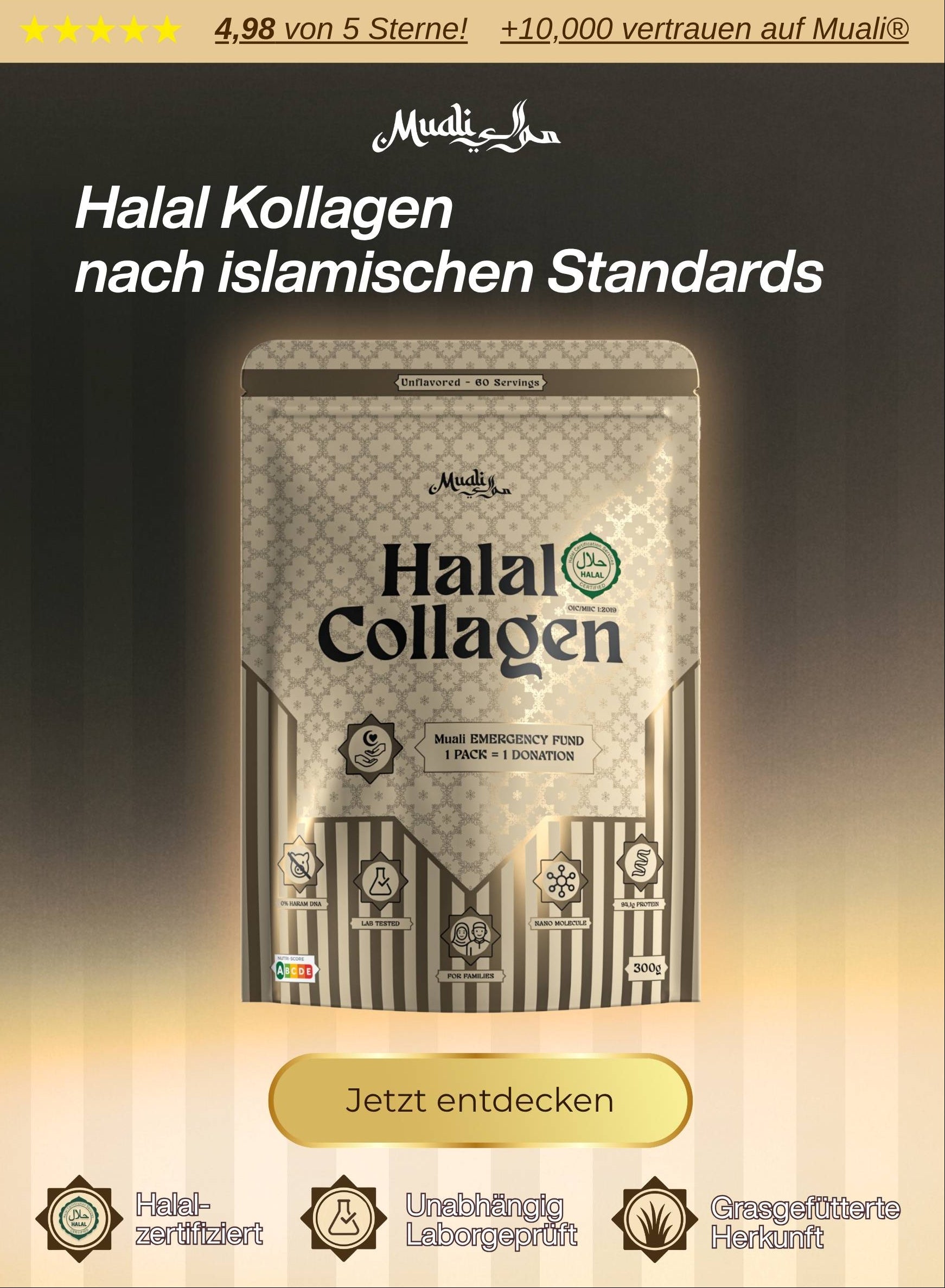 Hallo allerseits, ich benutze das Kollagen jetzt schon 4 Monate und meine Knie schmerzen sind weg. Meine Haut hat sich sichtbar gestraft auch im Gesicht. Ich würde das Muali Kollagen auf jeden Fall weiterempfehlen.