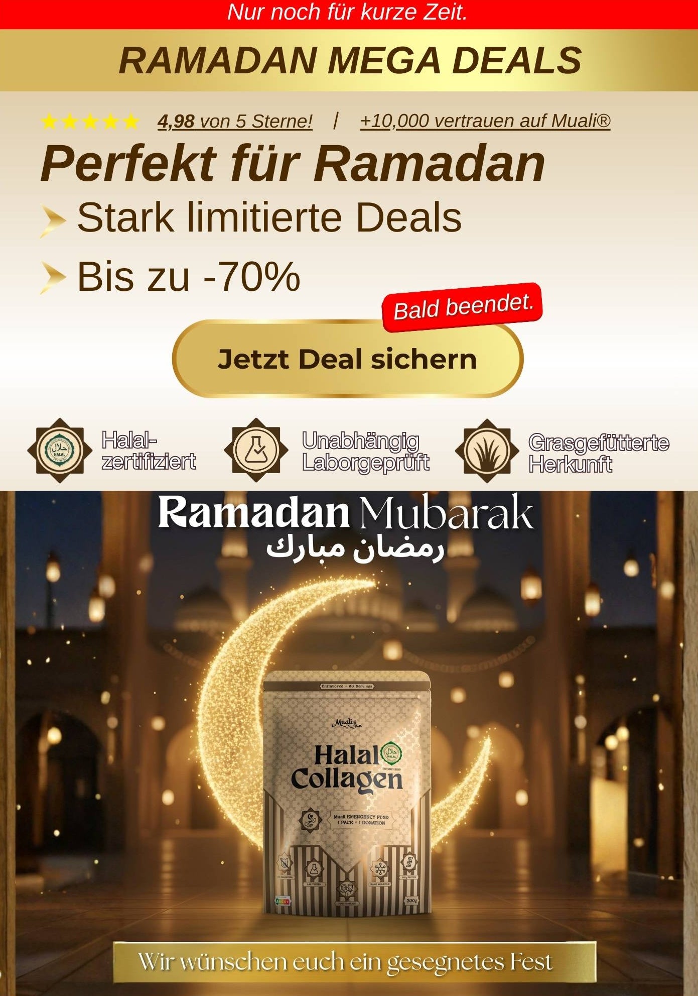 Hab das Familienset jetzt schon zum 4. Mal bestellt. Das Collagen ist eine Wohltat für meine Haare, Haut, Bindegewebe und das allgemeine Wohlbefinden. Hab es auch an Eltern, Geschwister und Freunde weitergegeben. Jeder ist begeistert.Im Familienset bekommt man eine Packung, ein unglaublich schönen Gebetsteppich und ein Tesbih geschenkt. Das ist eine tolle Idee. Das werde ich wohl noch viele Male nachbestellen. Ich werde auf jeden Fall dabei bleiben.