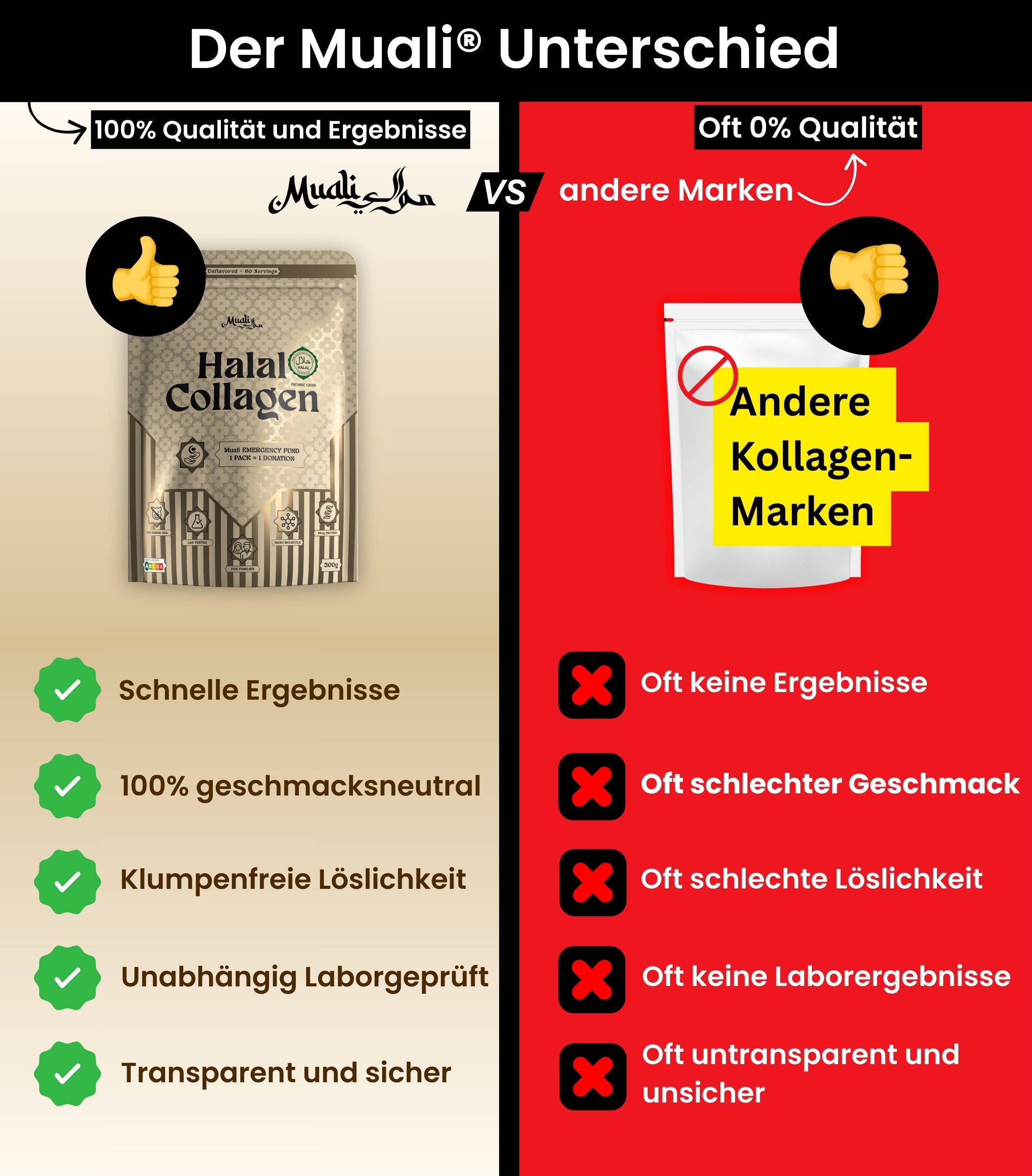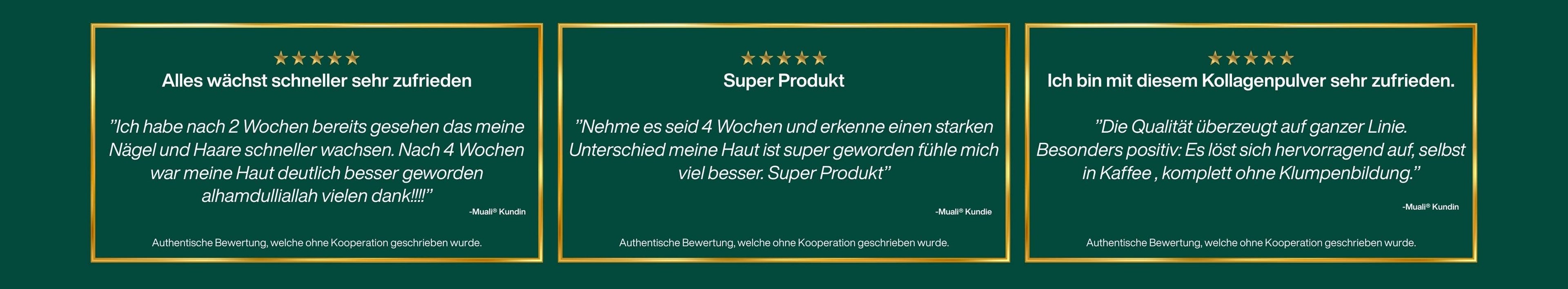 Ich bin sehr zufrieden mit MUALI! Die Qualität des Kollagens ist top, man merkt sofort, dass hier Wert auf Reinheit, Halal-Standards und Transparenz gelegt wird. Die Bestellung lief reibungslos, der Versand war schnell und die Verpackung sehr hochwertig. Klare Empfehlung und ich bestelle definitiv wieder. BarakAllahu feekum!